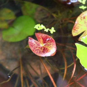 冬の間、ムカゴから出た芽を屋内で管理しているうちに品種不明になってしまった熱帯スイレン。 こんなに葉に模様の入る種って、なんだっけかなぁ??