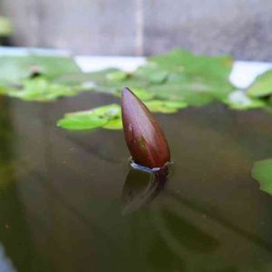 おはようございます。 熱帯睡蓮(ティナ)の蕾。 水面から出てきました。 あと数日で今年最初の花が見れそう...