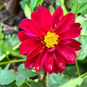 花壇の奥でミニダリアさん開花してました〜❤️可愛い🎶 この子は毎年🌱が出てくれるのに いつも草取りでうっかり踏んづけてしまうのです。゚(゚´ω`゚)゚。ゴメン…! 今年は…無事でした〜(*´∀`*)ホッ♡ 火曜日なので真っ赤なお花…その①