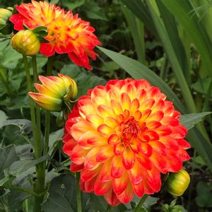 ミニダリアが咲き始めました 🟡から朱色がまぶしい💕