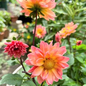 ミニダリア 一応雨の中毎日咲いてくれてるけど この赤のダリアが本当にミニダリアなんかい❗ と言いたいくらい背丈が高くて しかも好きなところ向いてて🤷♀️ 笑えるくらいバチャバチャでかわいい~❤️🩷🧡💛