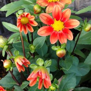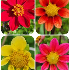 ミニダリア 4年目のミニダリア4色が咲き揃ってきました 今年は赤とピンクが多くて 黄色とオレンジが1株ずつです