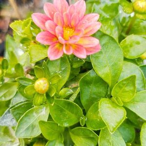 ミニダリア(おひさまダリア) 咲き出した🤩✨ 昨年秋に下の写真のようにかわいいお花を咲かせ、お花が終わったあと、 球根を株分けに挑戦💪💪 葉っぱばかりがモサモサとなり、鉢からはみでるほどになって、ようやく開花😊 蕾もたくさんついてるので、これからが楽しみ(((o(*゚▽゚*)o)))
