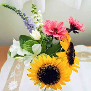 もうひとつの夢。 お庭で育てた花で、花束を作ること。 それぞれ大きくなってきて、切り花にできるくらいになりました❤️ ミニひまわりも脇芽が咲き始め、ちょうどいい大きさに👍️