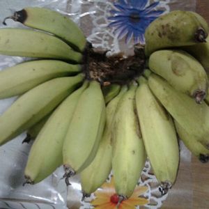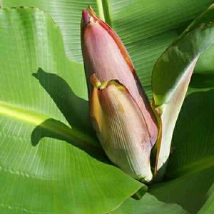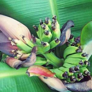 スーパーミニバナナ、果実肥大促進で雄花を切り取っています。