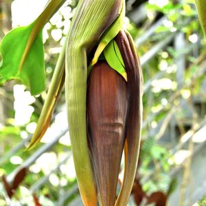 現在雄花開花中のスーパーミニバナナです。雌花は先に開花してしぼんでいます。 どうも失礼しました。何らかの不具合でこれと同じ物が6件投稿されました。他の5件は削除しましたが、削除された投稿にいいねしてくださった方に、改めてお詫び申し上げます。