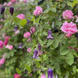 今日も良いお天気☀️ 大の里の奉納土俵入は雨天で屋内でしたが、故郷石川は晴れてました😅 我が家の💚ツル薔薇 バレリーナ🩷と💚クレマチス エトワールバイオレット💜が一緒に咲いています🤗