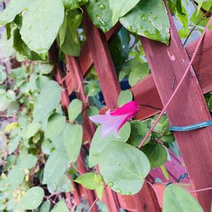 まだ、風が吹くと爽やかですが😌暑い日でした 我が家の💚クレマチス🩷 ハーグレイハイブリッド✨ ジャックマニー系が、咲き始めました💖多花性という事でこれから楽しみ😊 オベリスク仕立てです