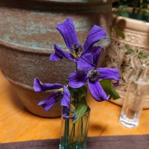 クレマチス リトルボーイさんが満開なので瓶にさしました🍀😊
