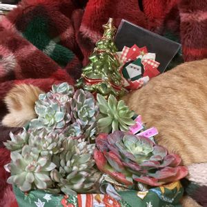 こんばんはぁ 明朝は放射冷却の快晴で 冷え込みそうです😮💨 ひと足早く サプライズ🎄 🧑🎄さんが来てくれました🎁 可愛い錦の群生多肉chanに コブエケサ~ンෆ⃛💗 45さん ありがとうございますꯁꯧ 冬越し 過保護にしちゃいます๑ ᷇ 𖥦 ᷆๑)♡ ⑤夕方ベランダで撮影したら ピンぼけばかりだったので 室内撮影会 トラくんも特別参加 してくれました(*´艸`)フフフッ♡