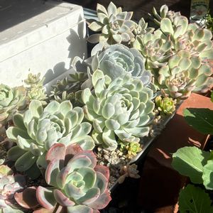 先日のリエールフェスの戦利品 毎月5日は群生の日に参加します❣️ 群生多肉が気になる〜😆って事で群生多肉候補生をお迎えしましたよ😊 今回はちょっと少なめかな? 前々から欲しかった苗もお迎え 新品種は少なめ😅 2枚目はうちの群生風多肉たち シルエットだと思って葉挿しっ子をまとめて育ててたらアレ?シルエットじゃない💦花月夜でした😅 3枚目 葉挿しっ子や挿し芽の置き場所が最近とっても日当たりが良くてみーんな色付いて😍可愛くなっちゃって寄せ植えに使えない😅 過酷な夏を越せた子たちは紅葉も綺麗です☺️