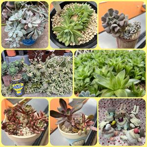5日はごっつご機嫌🏷 毎月5日は群生の日🏷参加しまーす😁 ↖️花うらら ⬆️オロスタキス鳳凰 ↗️キュービックフロスト ➡️ハオルチア ⬅️エメラルドリップと姫秀麗 ↙️ピンクルルビー ⬇️花いかだ ↘️ソクモン達…只今製作中❣️ 群生ってこんな感じであってます? ⬅️ブロックとポストの間の1センチほどの隙間にばら撒いた数枚の葉から増えたもので寄せ植えに重宝しています😁 だから頭がないのが多い〜💦 ➡️ハオルチアは一株からえらいことになっております💦💦これ直径25センチほどの大鉢です😅 他はみんな程よいかな😁 ↘️来週には45さんのところに送れそうです😆 ずっとサボってたけど再開してまたたくさん作れてごっつご機嫌❣️