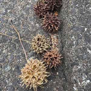 昨日今日の強風でモミジバフウの葉っぱた飛んでどこかに行き(庭に沢山入ってます)歩道と車道端に残ったのは実だけです すごい数 寒いので今日は歩道は掃除しません 庭は掃除したら45ℓ袋1こ分でやめました 植木鉢の後ろとかは見てみない事に〜 木に付いてる葉っぱはかなり少なくなって残り2〜3割 ですがこの実が多量についてますやっぱり落ちるのか⤵️ まだ青いのも落ちてきてます これを踏むと足を捻挫しそうで危ないのです 車にもかなり踏まれてます 風が強かったのはこちらだけで無く台湾から宮古島に帰って来た娘達も船酔いで大変だったみたいです 船酔いは娘、おっとりちゃん、ちび姫 全く酔わずに元気が有り余ってるのは娘の相方君、孫君、ちびちび姫だったそうです どうやら私は船旅は無理そうです