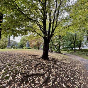 🍀イチョウ・ギンナン🍀 ①団地内の公園にはイチョウの木の1本にギンナンがなります。 下にはヌスビトハギ等の引っ付き虫か茂っていて近づけなかったけど、 今日は少し刈り取られていたので写真を撮ることが出来ました。💕🥰💞🤳📱 雌のイチョウなので枝が水平に伸びて垂れ下がっています。 ②雄のイチョウは真っ直ぐ上に伸びて立派な樹形になっています。🌲 ③桜の木も紅葉が進んで 落ち葉のじゅうたんができつつありました。💕🍂🍂🍂🍂🍃