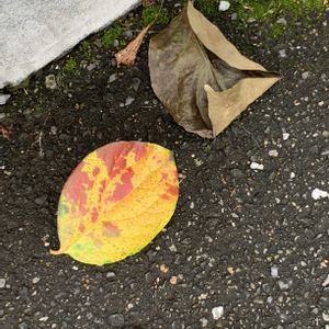 道端に落ちてた葉っぱ。 綺麗に緑と黄色で半分にわかれてたから、綺麗だなあって思って撮りました