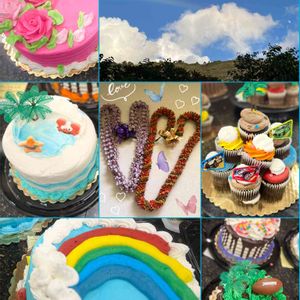 Aloha🌺 ハワイと言えば・・・誕生日には、 甘〜いケーキと🎂レイを持って・・・ お友達のバースデーパーティーの日 空を見上げると小さな虹🌈が。 決まり💡数ある派手なケーキの中から 虹🌈のケーキを選び、レイを持って パーティーへ Go❗️🚗💨 He la maikai nou (good day) ❣️