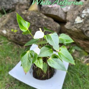 Aloha🏄🏻♀️ ハワイと言えば・・・アンスリウム わが家の白いアンスリウムは、 着生植物の特性を活かし、小さな岩の上に 根を生やしています。 ハワイでは🌈ウェディングに好んで用いられる🤍白いアンスリウム。 適度な湿度があれば、一年中温暖なハワイの気候🌈、丈夫に元気良く育ってくれます Mahalo🏄♂️