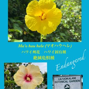 ハワイと言えば・・・ イエローハイビスカス! ハワイ州花の“マオ.ハウ.ヘレ” 交配種に比べると、花は小ぶり。 絶滅危惧種に指定され、野生の状態では ほぼ、見られるチャンスは無いので、 植物園で見つけた時は👀 すごーく嬉しかったです😆 🏷️ハワイと言えば