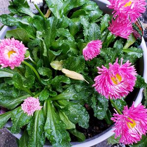 🌼雨の中のデイジー🌼 今日は朝から雨☔ 明日は雪に変わるそうです😂 雪降ったら歩いて出勤だぁ😢