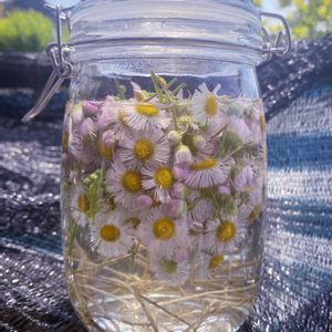 ハルジオンチンキ🌸 花と根っこだけ… 1ヶ月程漬けます 美白、シミ、シワ、日焼け後のケアなど。。