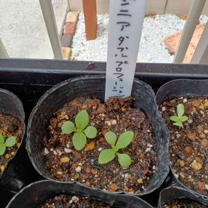 ジニアプロフュージョン チェリーバイカラー 種まきで育ててます。早まきし過ぎたのか発育はイマイチ。18中13発芽しました。このまま大きくなってくれます様に。