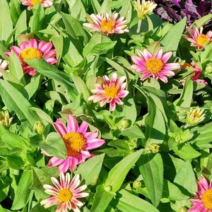ジニア プロフュージョン チェリーバイカラー 最初の花が咲き始めてから6日後になりました。 花壇に植えたジニアはそれぞれの株にたくさんの花とつぼみが💕 写真はいろんな顔のジニアたち。花も咲き始めと全開とで花色が違ってかわいいし、つぼみもまた、かわいいんだなぁ☺️💕
