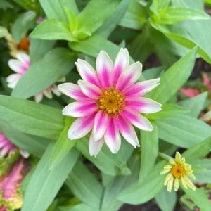 ジニア・プロフュージョン 去年、秋口に出会ったジニア・プロフュージョン(チェリーバイカラー) 目の醒めるような濃いピンクと周りの白さに魅了されました。 今年も出会ったら即 買おうと決めていましたが、[サカタのタネ]から種が販売されているのを知り、園芸店で苗を買うのを止め、種から育てて見ることにしました。 プロフュージョンでもやはりジニアは強い🤗 少ない数の種でしたが、ほぼ発芽し開花してくれました。 寄せ植えにしたり単鉢に植えたりして、やっとこれから大活躍してくれそうです😚