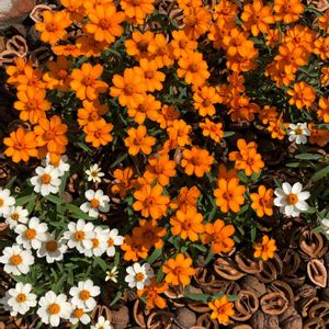 昨年の種がこぼれて夏の花壇はジニアプロフィージョンでいっぱい🌼