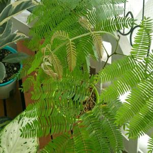 お花屋さんでとてもお買い得なエバーフレッシュがあったので、ゲットしました。鉢を植え替えます。