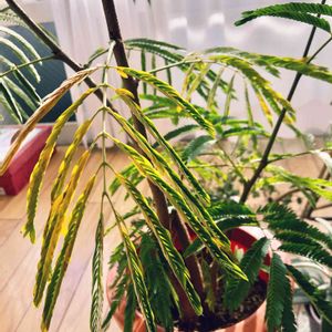 先程ゴムの木の件で投稿しましたが、近くに置いてあるエバーフレッシュさんも下から黄色くなってきて…😱、いくら冬でも水やりの頻度が少なすぎるのかなぁ🤔? それとも葉水をするべきか…、どちらにせよ、今日の寒さは尋常でないので(ただ今室温3度位です)、暖かな日にお世話したら良いのでしょうか❓またもや困り果てています。
