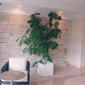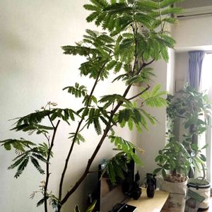 “ New arrival ” しなやかで涼やかなエバーフレッシュ。背高の2本で入り口がアーチ状に。 くぐって、いらっしゃいませ。 ◻️ネムノキ エバーフレッシュ 夜に葉を閉じるエバーフレッシュ。朝になると堂々と葉を広げます。 昼間に葉を閉じていたら、水切れの可能性も。よく観察してあげてください。 いま時期からはどんどん新葉を広げ、いきいきと優美な姿になっていきます。 シャボン玉のような丸い花もまた愛らしい。
