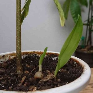 まだまだ小さいエバさん。 親の根元で発芽、そして友人宅へ。 最近、我が家に帰ってきたこのコ(^^)🎶 環境の変化でボロボロ葉を落としたりもしたけれど。 見事に新芽を出しました😊✨ とても嬉しいです✨