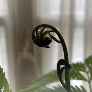 🌿エバーフレッシュ🌿 ねむの木。 2月末に新芽が出てきて、小さな鉢じゃかわいそうだと思い植え替えようとしたら株がパラりと2つに別れたので2鉢にすることに。 そしたら両方とも急に元気なくなっちゃって、ずっと葉っぱ閉じたまま。 ダメかもと思いつつ祈り続けてたら徐々に復活、ついに新芽が❗❗🌿