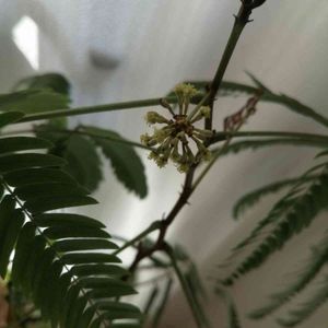 8年ほど育ててきたエバーフレッシュ(恐らく)なのですが、今日気付いたらこんなものが咲いて(?)いました。花粉の様なものが付いています。これは何なのでしょうか。教えて下さい🙇♀️