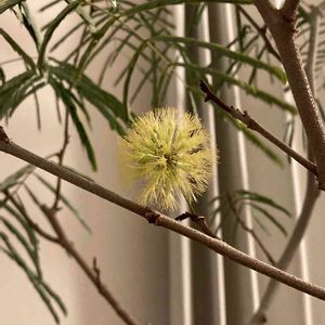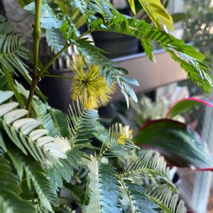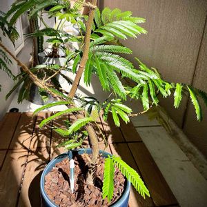 去年30センチ位でお迎えしたエバーフレッシュ🌿 成長が早い😳 ちょっと分かりにくいけど S字に曲げてみた✨ ポンポンの花は 来年におあずけみたいです😁