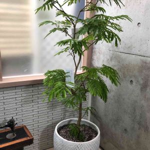 7月 素敵な鉢と一緒に我が家へやって来てくれたエバーフレッシュ🌿 サンルーム完成の記念樹です✨