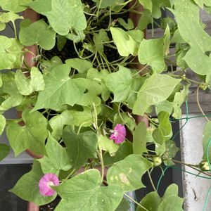 🌱2025年🌸朝顔日記127 😄おはようございます❗️ 🌸今朝は1輪+ジュニア1輪です☺️ 3枚目の写真は、こぼれ種から何株か🌱新芽がニョキニョキ出てました😀 今年通算🌸2086輪+77輪(ジュニア)になりました😉