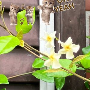 おはようございます😃 散歩道にて🤗 今週もよろしくお願いします😄 猫のスタンプで遊んでみました🤭 ①ティカカズラ ②トレニア ③サンゴバナ ④ハツユキソウ(斑入り) ⑤アサガオ 🏷️2のつく日は斑入りの日 🏷️斑入り見つけ隊♪No.23 🏷️月曜日は元気色の花 🏷️ニャンニャン祭り 参加します。