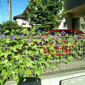 朝撮りを今頃投稿。 線路の金網に力強く咲いています♬