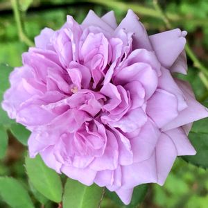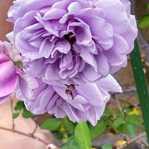 🌹つる薔薇 レイニーブルー 可愛い小輪の薄むらさき色💜 クシャクシャな花姿✨で 咲き始めました😊 春期よりも色は濃くなっています。