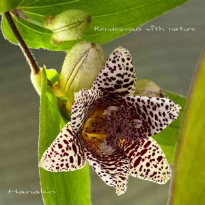久しぶりにコハクホトトギス(琥珀社草)に出会いました。 コハクホトトギスはジョウロウホトトギス(上臈杜草)とヤマホトトギス(山杜鵑草)との交配種でホトトギスの園芸品種です。 茎は下垂し、花びらに入った琥珀を思わせる斑紋が特徴的で魅力溢れるホトトギスです。 別名、コハクジョウロウホトトギ(琥珀上臈杜草)とも呼ばれています。 『🏷️太陽がくれた季節a』 『🏷️2025年櫻鐵ホトトギスコレクション』