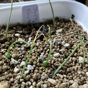お久しぶりで🏷みしょり隊、参加させていただきます🙇 フライレア属『豹の子』です 昨年、日焼けさせてしまったのか、肌がこんな色になっています そして、半年以上そのままで放置していた種鞘を採種し、ダメ元で播いてみました 約100粒ありました まだ気温🌡が低いので発芽するかわかりませんが ちなみに2月だったか🤔に播いた鶴の子はまたしても発芽せずです😵