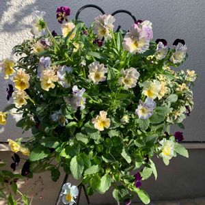 2022.11.27 ビオラのハンギングバスケット この後、強風により2度の転倒を乗り越え春にはまたきれいに咲いてくれました。