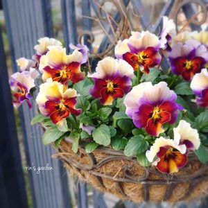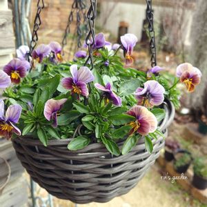 吊り鉢レディ 来る日も来る日も寒かった頃に水切れで弱らせてしまいました お天気が悪いと水やりを忘れがちだけれど 風が強かったり空気が乾燥していたりすると意外と土が乾きます 西風が強い我が家では吊り鉢は乾きやすいので注意が必要です⚠ 寒さが続くときも要注意⚠ 外に出ないから気付くのが遅れます⤵️ そんなダブルパンチで弱らせてしまった吊り鉢レディ 少し花数が増えてきました✾