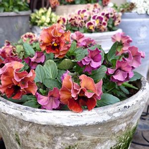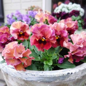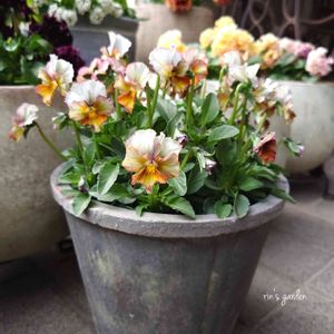11月初めにお迎えしていた ミルフル アンティークフリル 私の地元ではミルフルの入荷がほぼ無くて 限られた数店舗にそれぞれ1~2ケースしか入りません⤵️ でも今シーズンはミックスフリルに加え昨年は入荷しなかったアンティークフリルもそれぞれ1ケースずつ入荷✨ 育ててみたかったのでそれはもう大急ぎで買いに行きましたともっ😆 でも花色が色々でいざ選ぶとなると悩んでしまってぐーるぐる… 悩みに悩んで連れ帰った子は「あれ これアンティークカラー?」な感じだったのですが💦 うん、アンティークで間違いないです! 全体的に濃い色になっているけれど良い色になりました❁ そしてスマホを替えたら実物に近い色で撮れるようになりました🙌ヤッター この子はギリギリ軒下からはみ出る位置にいたので雪を被ったり数日毎朝ガリガリに凍っていたけれど本日こんな感じで復活しております✨ ビオラって強い 鉢が大きすぎたかなと思ってたけれどほぼ鉢いっぱいになってきたし春が楽しみ😊
