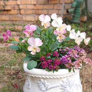 今年もこの吊り鉢にLady 一昨年は白っぽい子 昨年はブルーを植えたけど最終的にピンクっぽく色が変化しました 今年は11/13日のグリニッシュな子を🌱 イエローに変化しそうな予感? 花の形が少し変わったよ