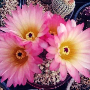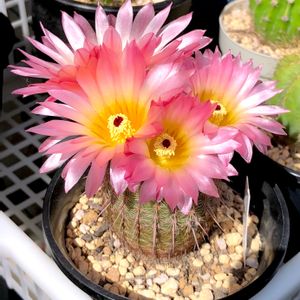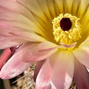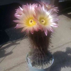 うちのも咲きました。この絶妙なパステル調の薄桃色と黄色のグラデーションが美しい、ノトカクタスいちの美花です。うっとりします。