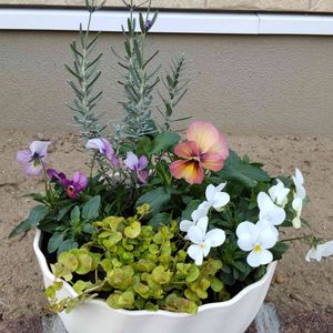 仙台では4月〜6月に全国都市緑化フェアがおこなわれるそうです🌸 大花壇楽しみ。 その一環として、花壇作りの研修があり参加して来ました! 講師の方の為になる話を聞いて、寄せ植えを作ってお持ち帰りできるという😙 パンジービオラネモフィラミモザの思ってたより大きい寄せ植えで楽しかった🥰 このミモザ、葉がギザギザしてる! 三角葉アカシアでしょうか? 花が咲くのが楽しみです🪴🟡🟡🟡