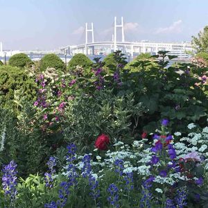 今日は横浜開港記念日① 港の見える丘公園に行ってきました🌹 バラから紫陽花へ、少しづつ季節が動いてます♫ 紫陽花の向こうに、横浜ベイブリッジが見えます。 上左 ベルベティ トワイライト 中左 フラゴナール 中 スカシユリ ナボナ ガーデンベアちゃんが迎えてくれました💗