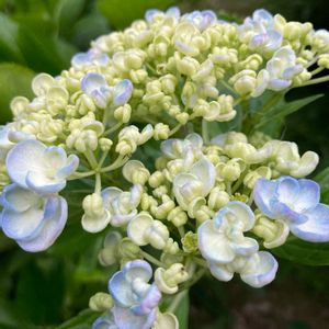 ウズアジサイです。 別名 オタフクアジサイ オタフクアジサイの特徴は花の形です。花弁の縁が貝のように巻いた花びらの形から名前がつけられました。ぷくぷく花びらのお多福紫陽花です。